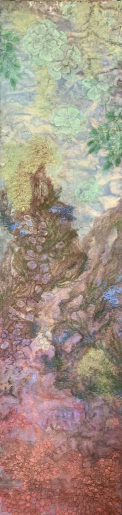 所以在日光流年的昨日重現中追憶感懷並自我療癒,就像一個尋心者的祕密航行,在靜水深流的漂游或暗潮浮沉中書寫著生命日記。日記的篇章中有生活經驗與文化的記憶、生命與理想的期許渴望和內在精神的觸動,本次《流年憶語》膠彩畫個展將吟遊著創作者-楊渝惠的行者告白。