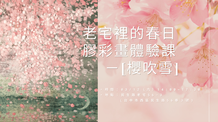 膠彩畫入門(含教學、礦物顏料等),無繪畫基礎可,可自行列印喜歡的春櫻、夜鷹、落櫻繽紛圖樣,成品為24x27cm白色畫仙板膠彩畫一幅。