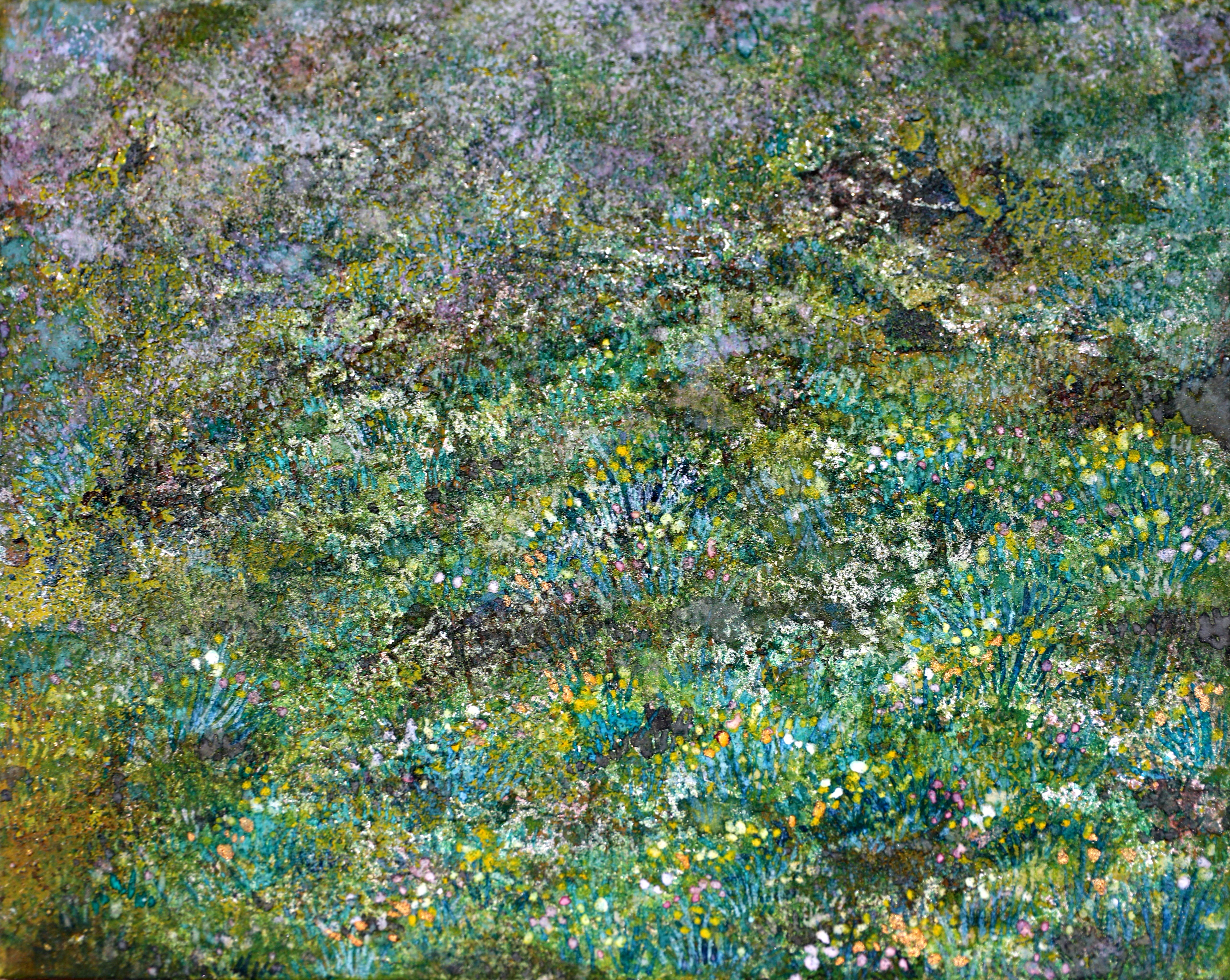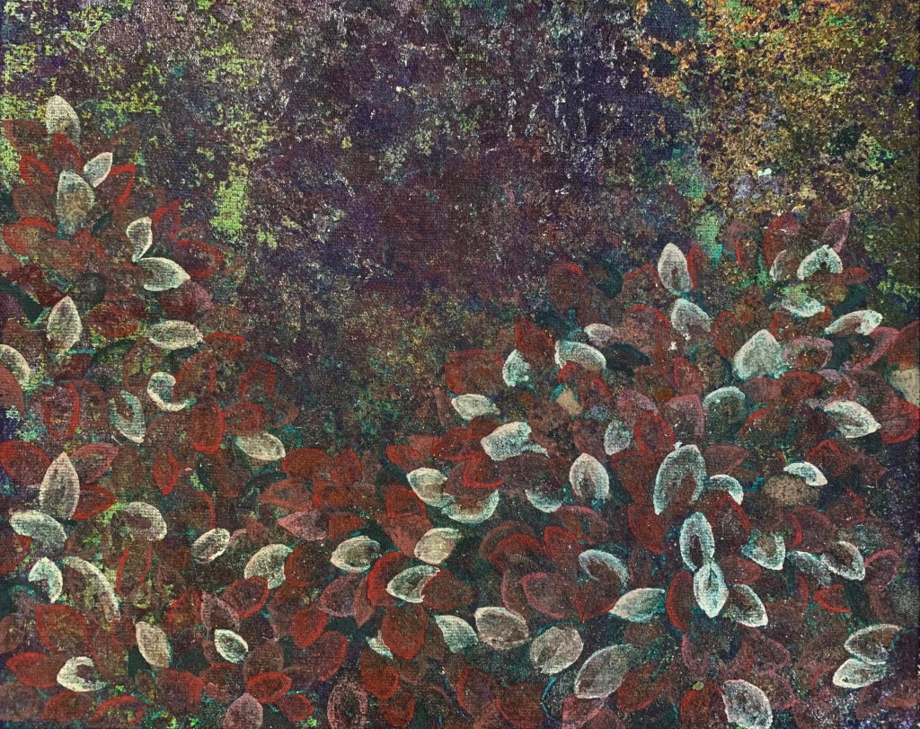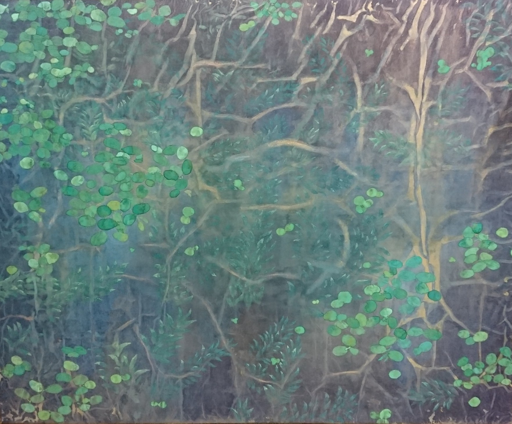 24x27cm畫仙板「春日的秘密花園」膠彩畫* 1幅。