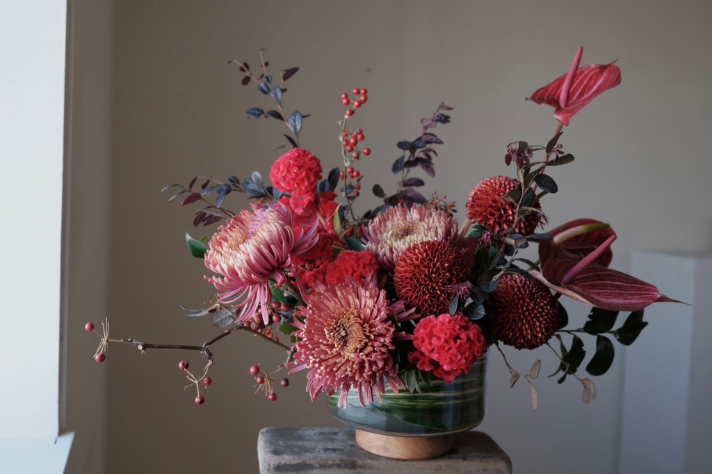 這次和9’SFLORAL攜手推出的新年盆花課,Joanne老師也特別挑選日後好重複運用的透明圓形玻璃木底座盆器,進行盆花設計與授課。02/07這一天,我們不只要親手插出乘載新的一年的期盼賀年盆花,更藉此祝福大家在新的一年中事業蓬勃,龍華富貴、好運連連!