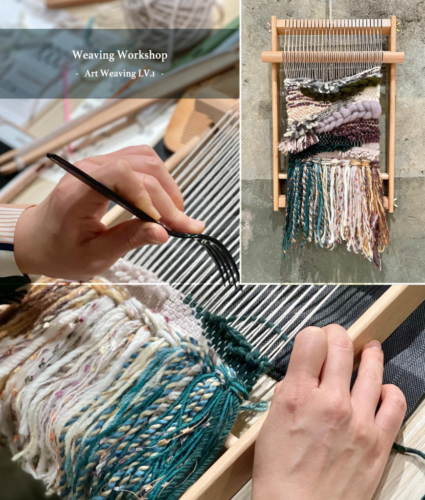 Art weaving 也稱作 Free weaving (自由織),就像是織布界裡的 free style。 我們不給材料包,而是提供一桌數種不同線材讓大家自己配色及挑選,透過簡單的技法及自由搭配色彩,在經緯間天馬行空便能創造出屬於自己的藝術。課程最吸引人的地方是每個作品與配色都不會重複,皆是獨一無二!