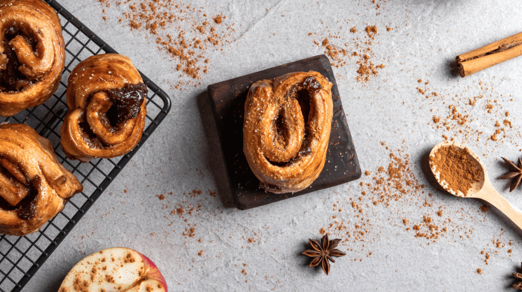 和宅主一樣的肉桂捲控寶寶們集合囉~「原味鹽之花肉桂捲、蘋果威士忌肉桂捲、核桃肉桂捲」三種口味一次滿足!更何況不只好吃還可以自己動手做更好玩🤩🤩🤩 如果你也每次看到麵包麵師傅現做肉桂捲,一邊快速捲捲捲一邊沈浸在滿室肉桂香氣,就覺得超級療癒~那麼這個國慶假期,就和我們一起相約「旬食工作室」現場,來場肉桂捲同好DIY小聚吧!