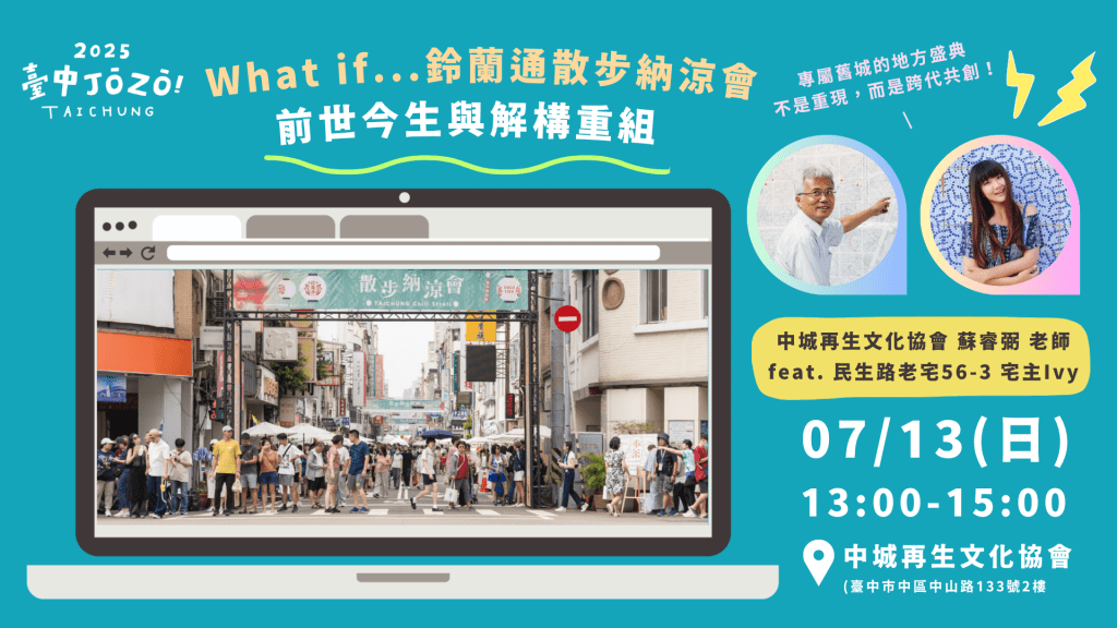 07/13(日)13:00 [帶出場] 鈴蘭通散步納涼會的前世今生與解構重組 feat. 中城再生文化協會 蘇睿弼老師
