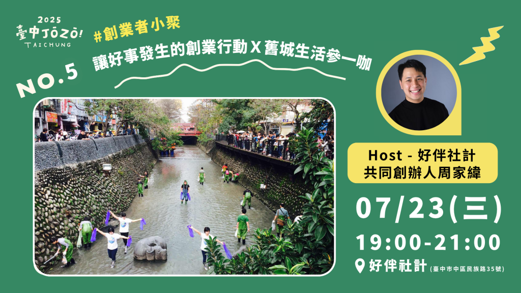 07/23(三)19:00 [帶出場] 讓好事發生的創業行動X舊城生活參一咖!feat. 好伴社計 共同創辦人 周家緯