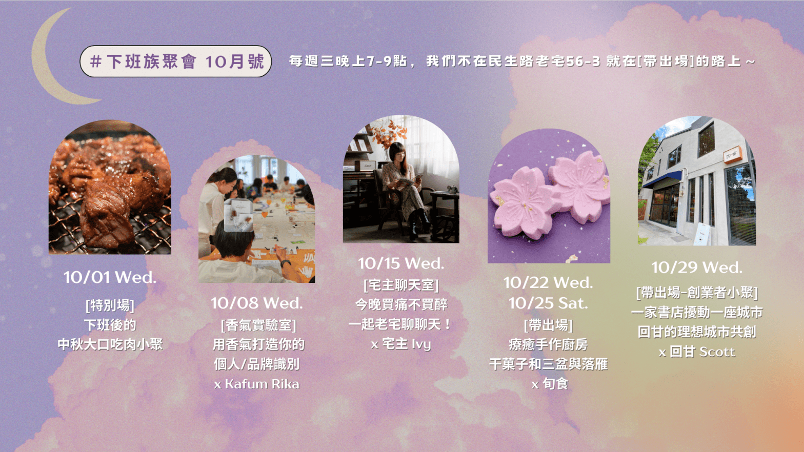 這個10月,邀請大家用美食、香氣、對話、手作與創業者場域分享與共創,在一場場的交流與體驗中,持續挖掘生活的多種可能和每個當下不同樣貌但一樣可愛的自己~