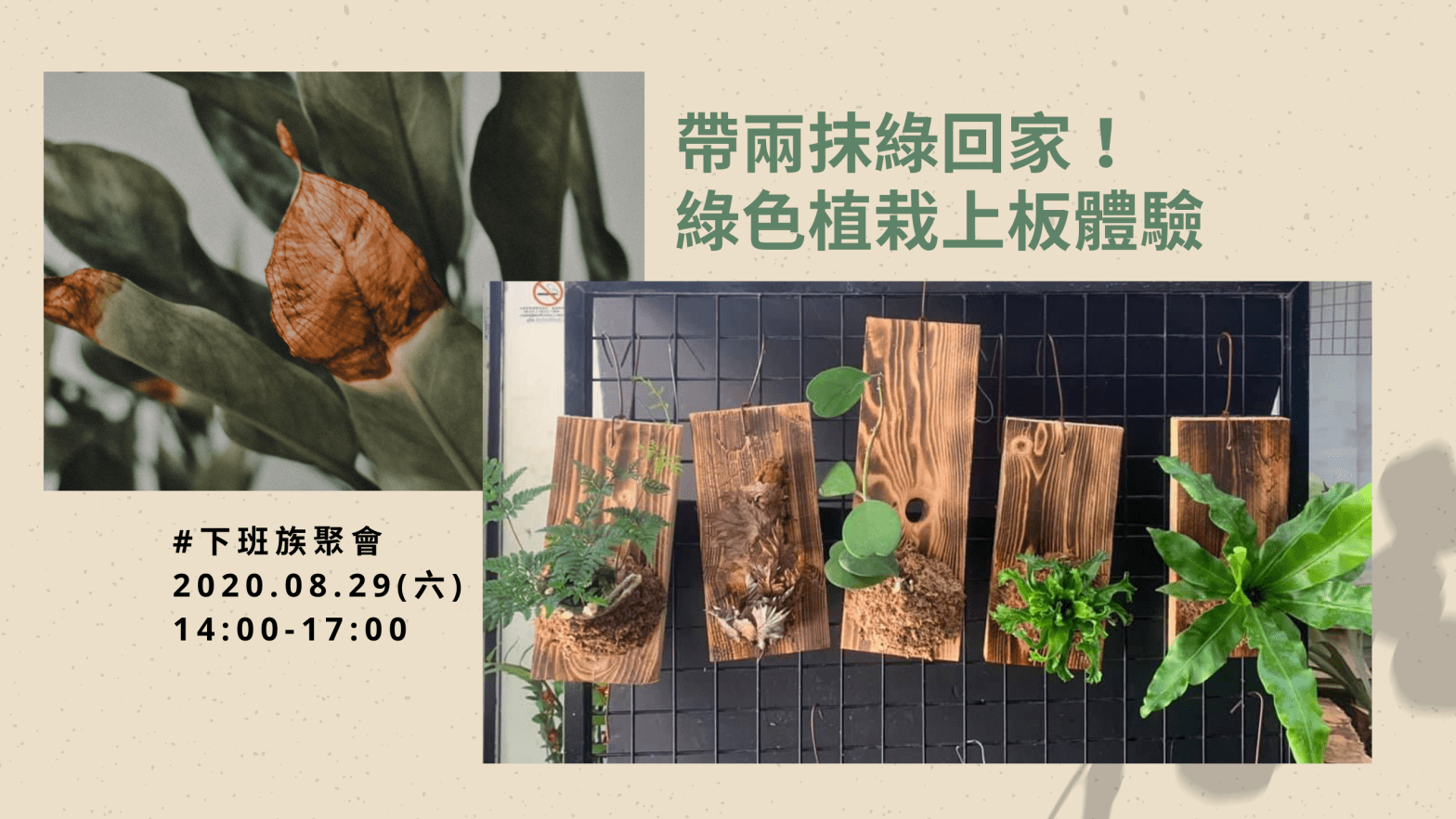 08/29(六)14:00 帶兩抹綠回家!綠色植栽上板體驗