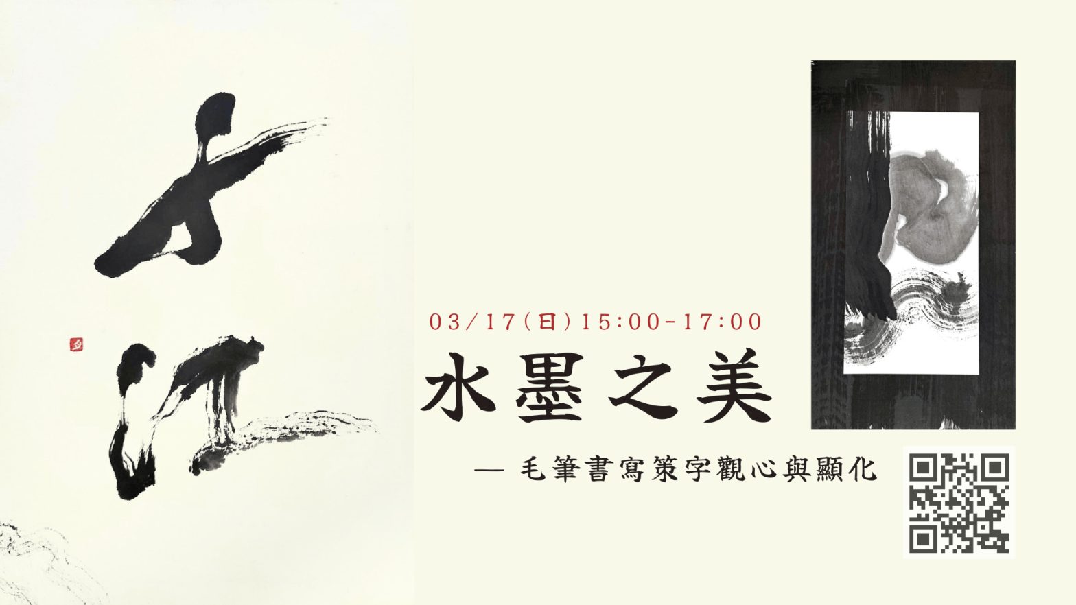 03/17(日)15:00 水墨之美-毛筆書寫策字觀心與顯化(已結束)