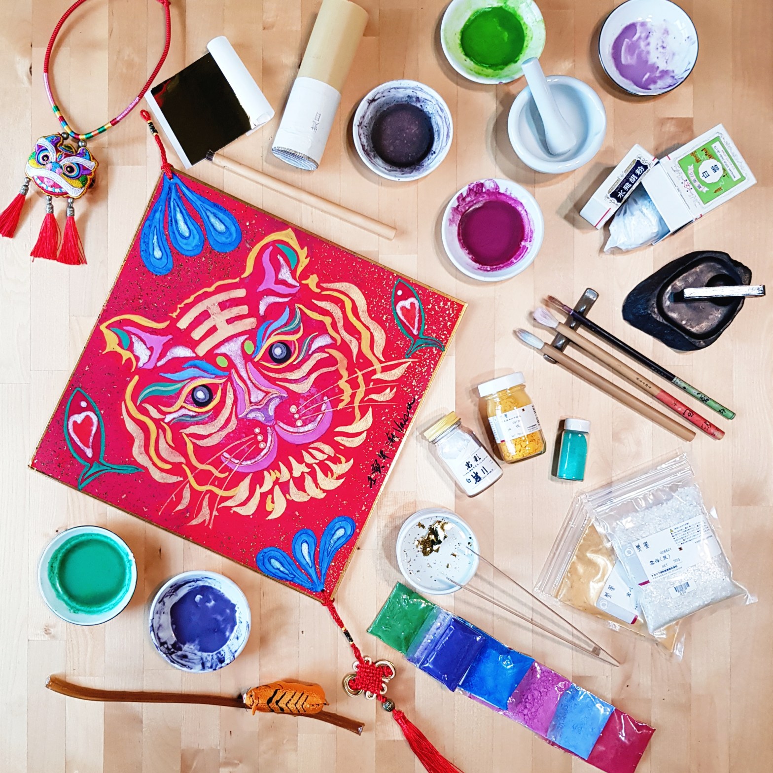 【福虎生豐】新春膠彩年畫體驗課,邀請大家以「虎」的形象為主題,繪製出新年期望或吉祥意涵的膠彩年畫,課程也應景取名為「福虎生豐」,一起虎年招福大豐收!