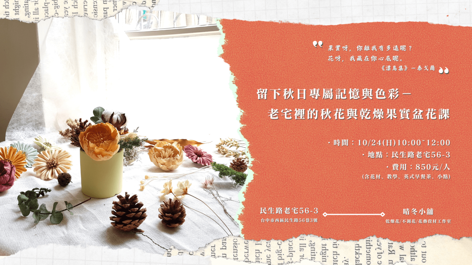 [已結束] 留下秋日專屬記憶與色彩 – 老宅裡的秋花與乾燥果實盆花課